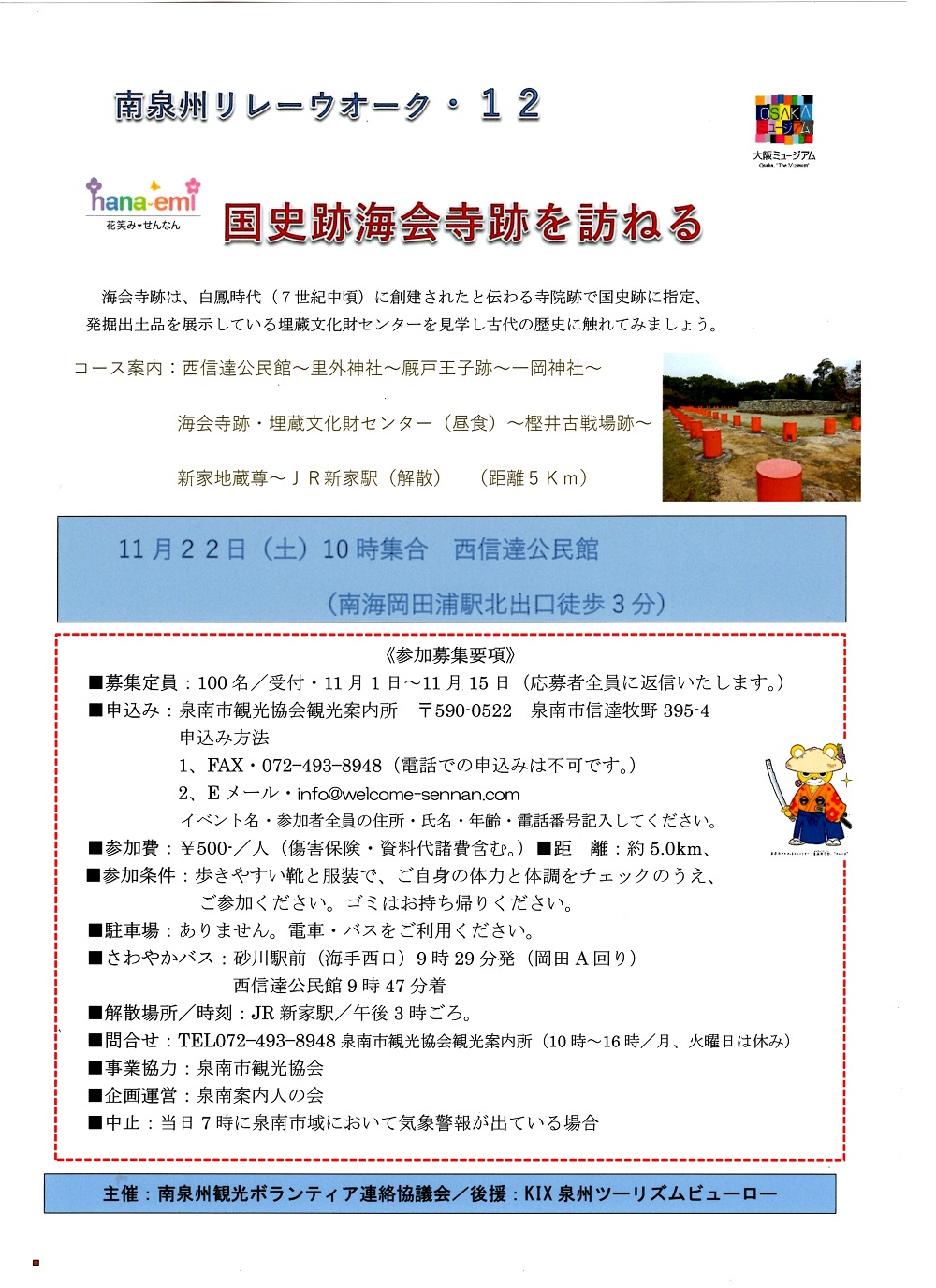 【主催】南泉州観光ボランティア連絡協議会/後援:KIX泉州ツーリズムビューロー