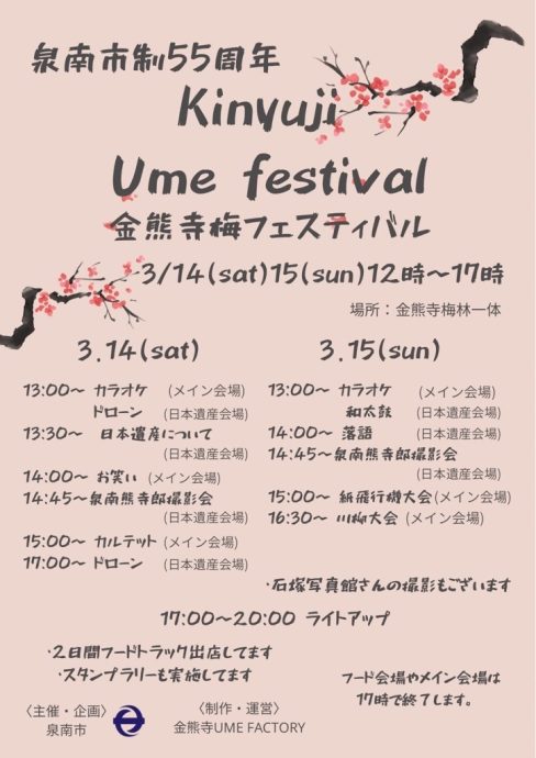 「金熊寺梅フェスティバル」が泉南市にある金熊寺梅林にて開催されます!