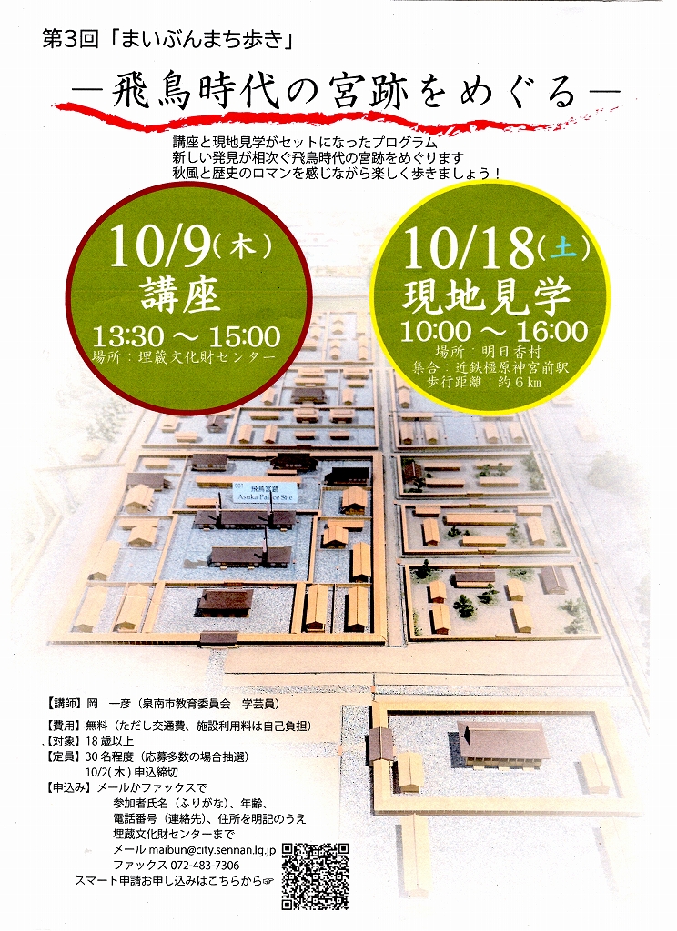 10月9日(木)まいぶんまち歩き「飛鳥時代の宮跡をめぐる」(事前申込要)