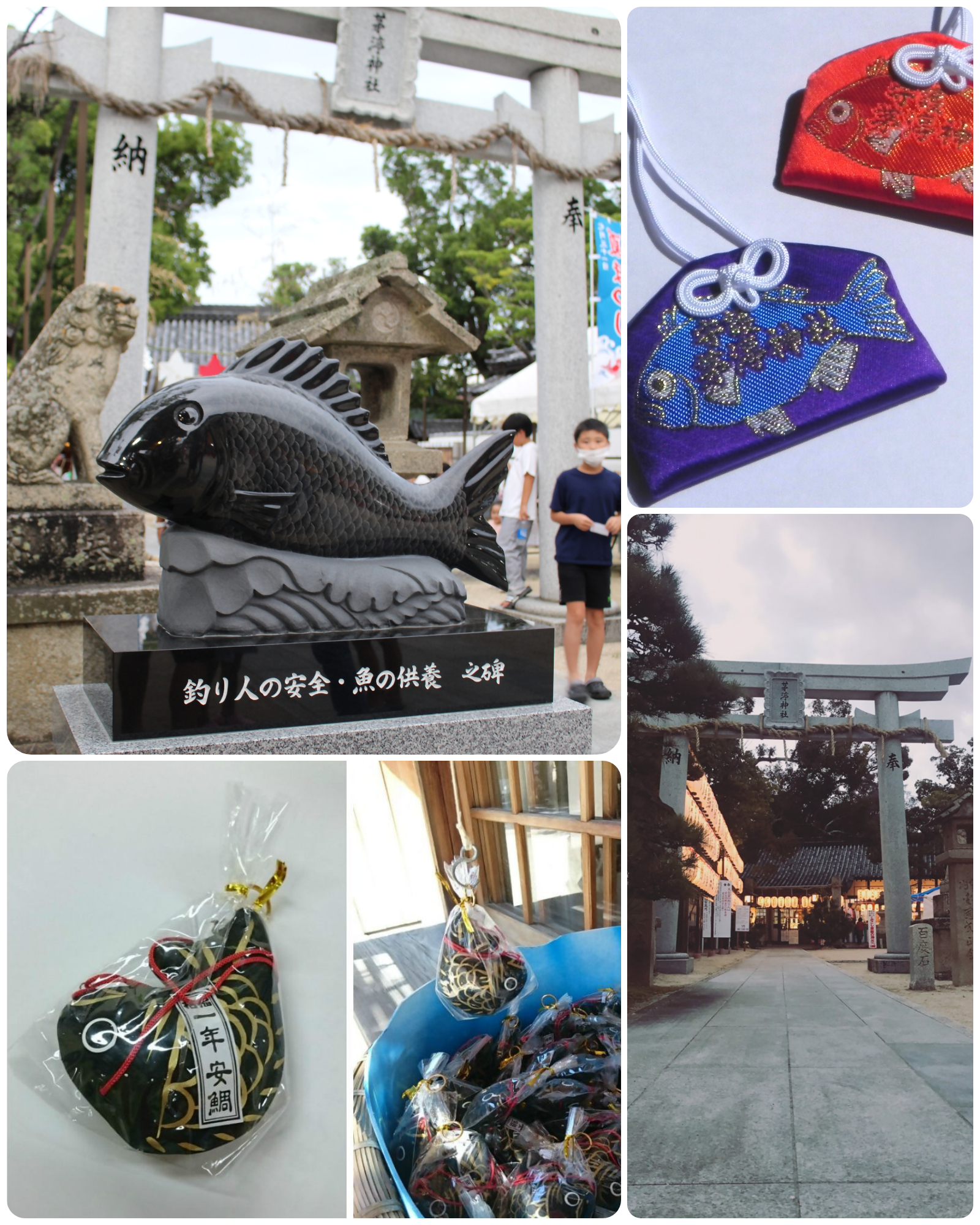 茅渟神社は、社名にちなみ、チヌ(黒鯛)釣り愛好家が供養と釣りの安全祈願に全国から訪れる神社です。熊野詣が盛んになる平安時代、庶民が八王子権現を勧請したのが起源とされています。自分で釣り上げる「1年安”鯛”」おみくじやチヌをデザインしたお守りが人気です。
